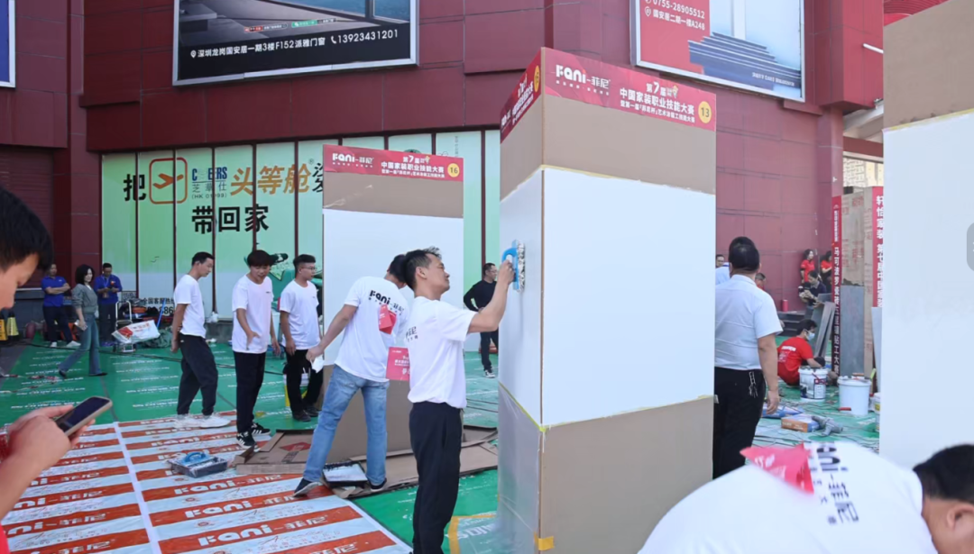 为深入推动家装行业高质量发展,弘扬新时代工匠精神,由中国建筑材料流通协会主办、中国建筑材料流通协会家装委员会承办,深圳市家装家居行业协会、深圳市涂料技术协会、国安居龙岗店以及菲尼艺术涂料联合承办的“第七届中国家装职业技能大赛暨第一届菲尼艺术涂装工大赛深圳赛区”,近日在国安居龙岗店盛大举办。来自深圳及周边地区的优秀涂装工匠齐聚一堂,在菲尼艺术涂料的专业赛道上同台竞技、切磋技艺,为现场观众呈现了一场集“专业、艺术、环保”于一体的行业盛会。