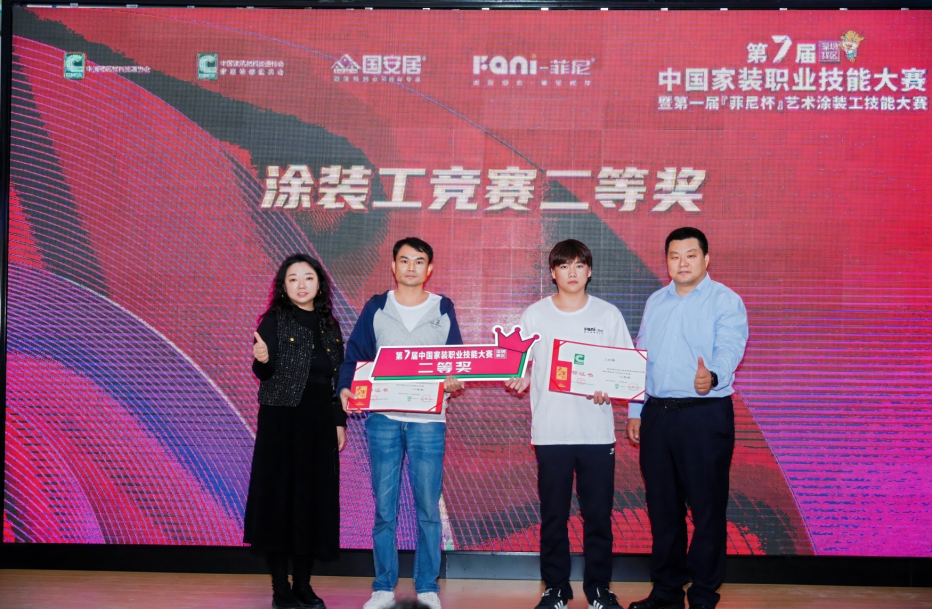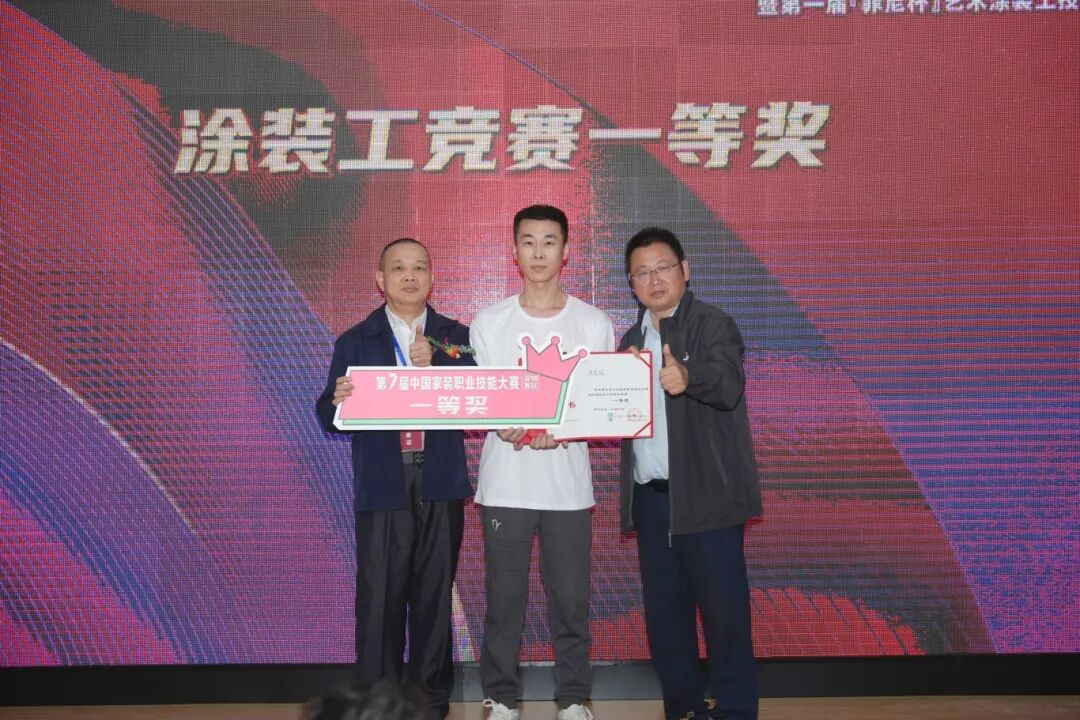 在热烈的音乐与掌声中,大赛各项荣誉依次揭晓。根据现场作品的综合表现,组委会评选出了一等奖、二等奖、三等奖、优胜奖、最佳人气奖,每一位走上领奖台的选手,都在菲尼艺术涂料的赛场上,为自己的职业生涯写下了闪光的一笔,也为中国家装涂装行业的未来注入了新鲜的力量。