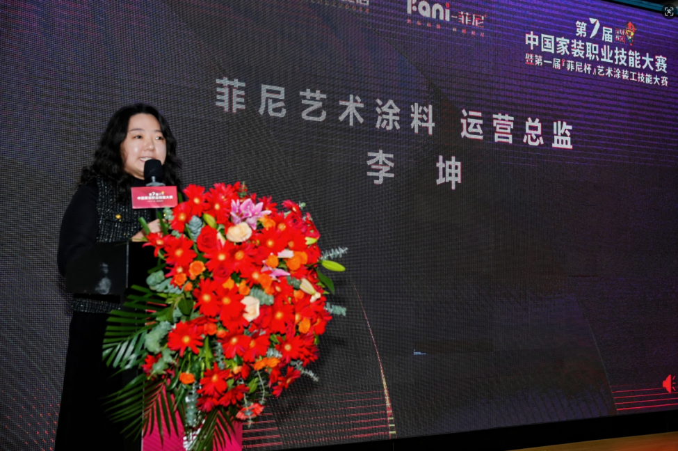菲尼艺术涂料新媒体运营总监李坤作为本次大赛的重要品牌承办方代表,在致辞中分享了菲尼艺术涂料品牌的发展理念。李总监表示,菲尼艺术涂料品自成立以来,一直专注于环保艺术涂料领域,坚持“以环保为根,以艺术为魂,以品质为本”。菲尼深知,艺术涂装要走进千家万户,离不开一线涂装工匠的专业施工和持续精进的技能。因此,菲尼愿意通过赞助赛事、提供培训、搭建交流平台,帮助更多优秀涂装师脱颖而出,让“艺术墙面”真正成为普通家庭可触可感的生活品质升级。此次大赛不仅是竞技场,更是菲尼与行业共同成长的交流场、孵化场。
