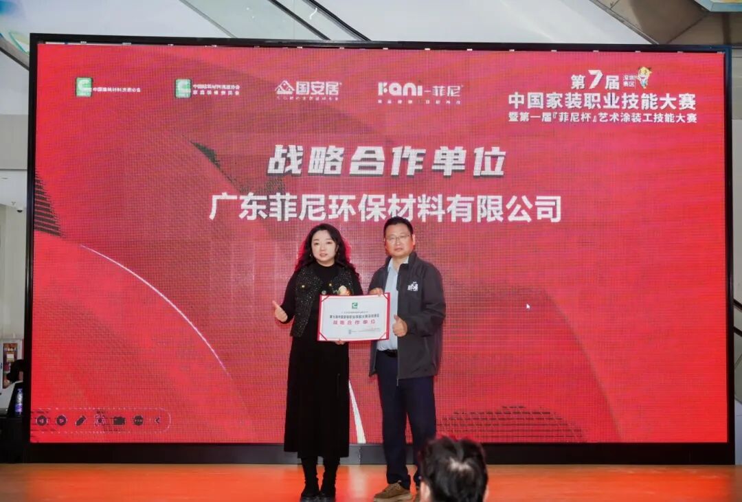 经过激烈比拼与专家评审,大赛迎来了万众期待的颁奖盛典。为感谢广东菲尼环保材料有限公司在本次大赛中的大力支持,以及其在推动家装及涂装行业升级发展方面所做出的突出贡献,特授予其“大赛战略合作单位”荣誉证书。